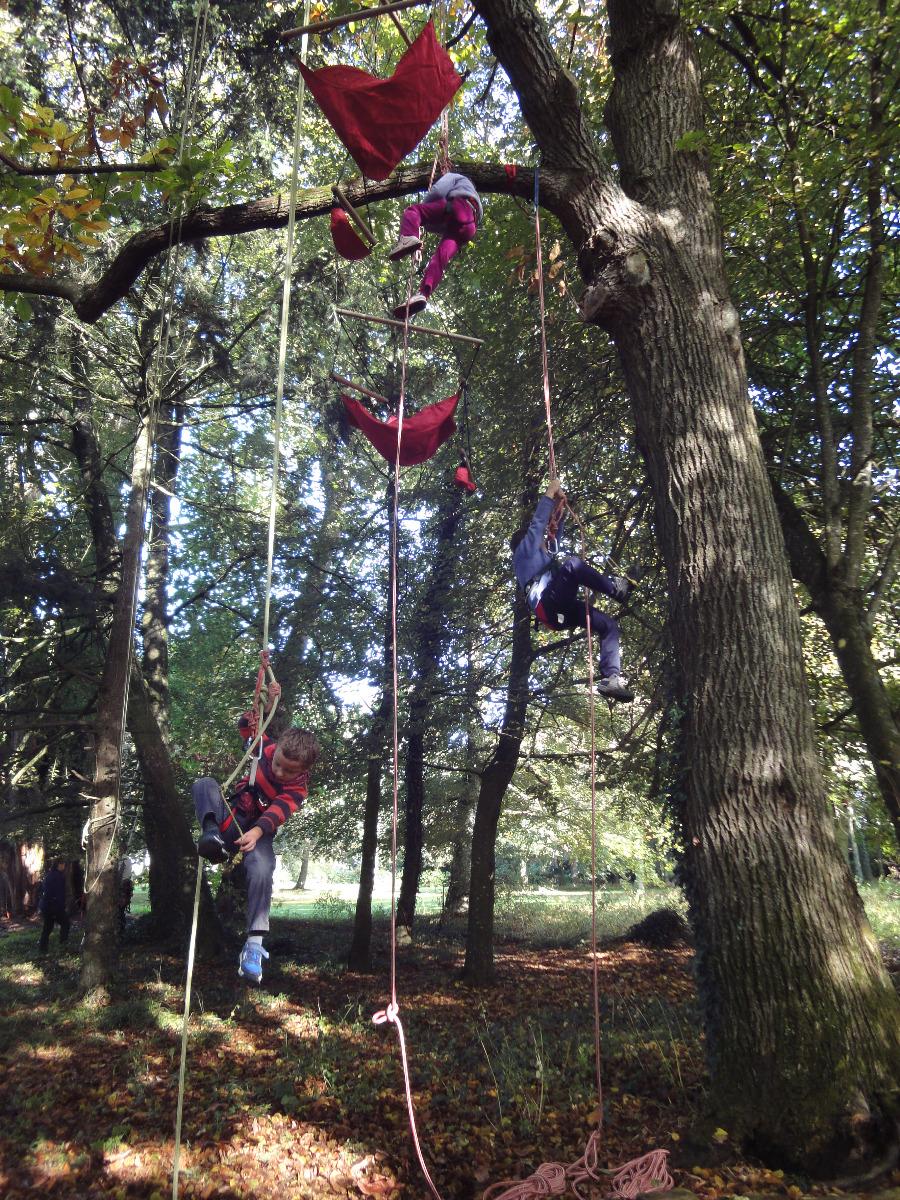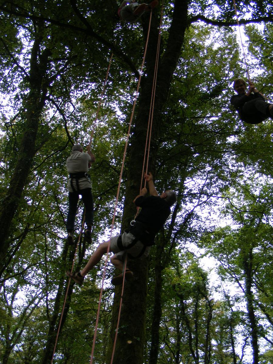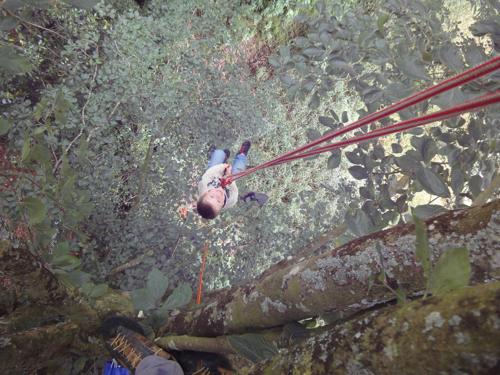 - grimpe sur corde pour accéder jusqu'au coeur des arbres